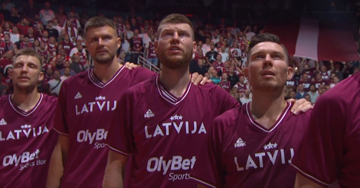Kristaps Porzingis, Davis Bertans i Dairis Bertans u dresu košarkaške reprezentacije Letonije